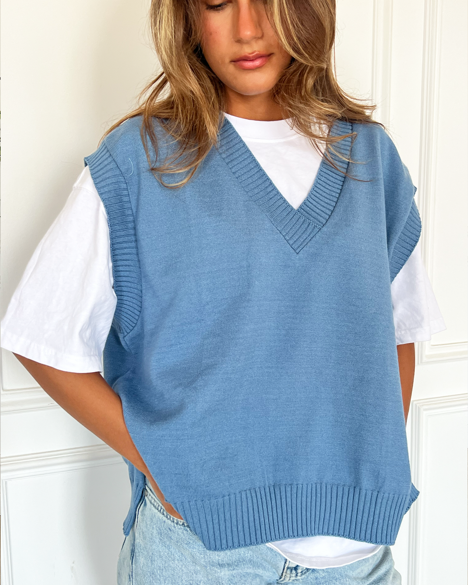 Stay cozy and fashion-forward this fall with our Knit Vest. Perfect for layering, this vest adds a stylish touch to any outfit. Don't miss out on this must-have piece for the season!