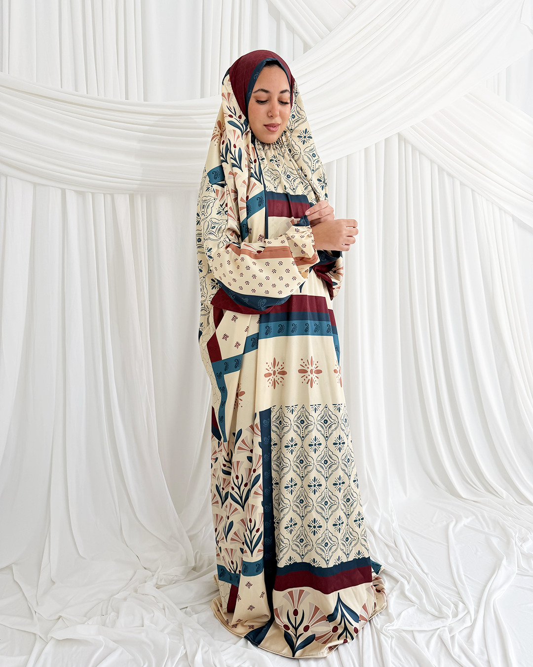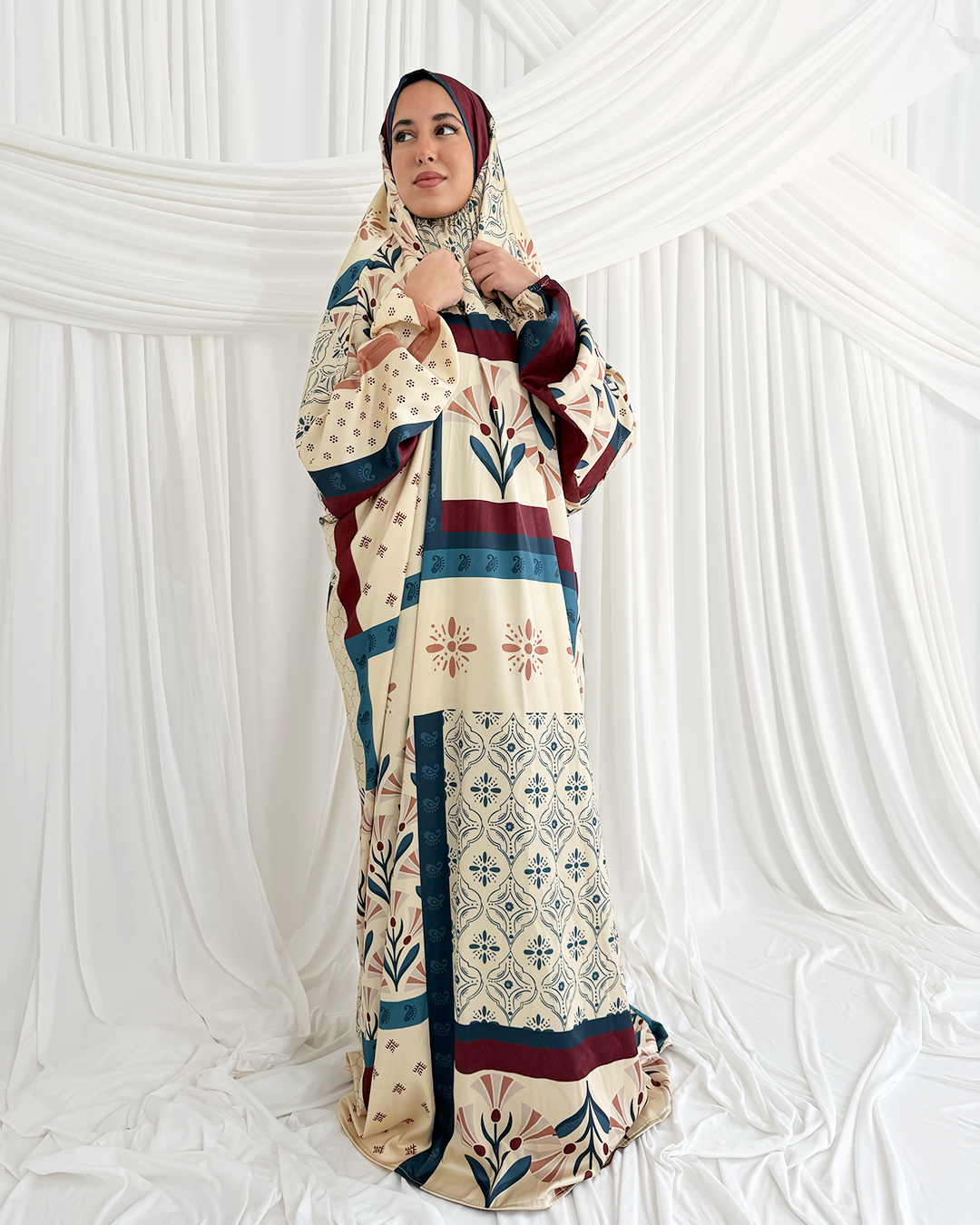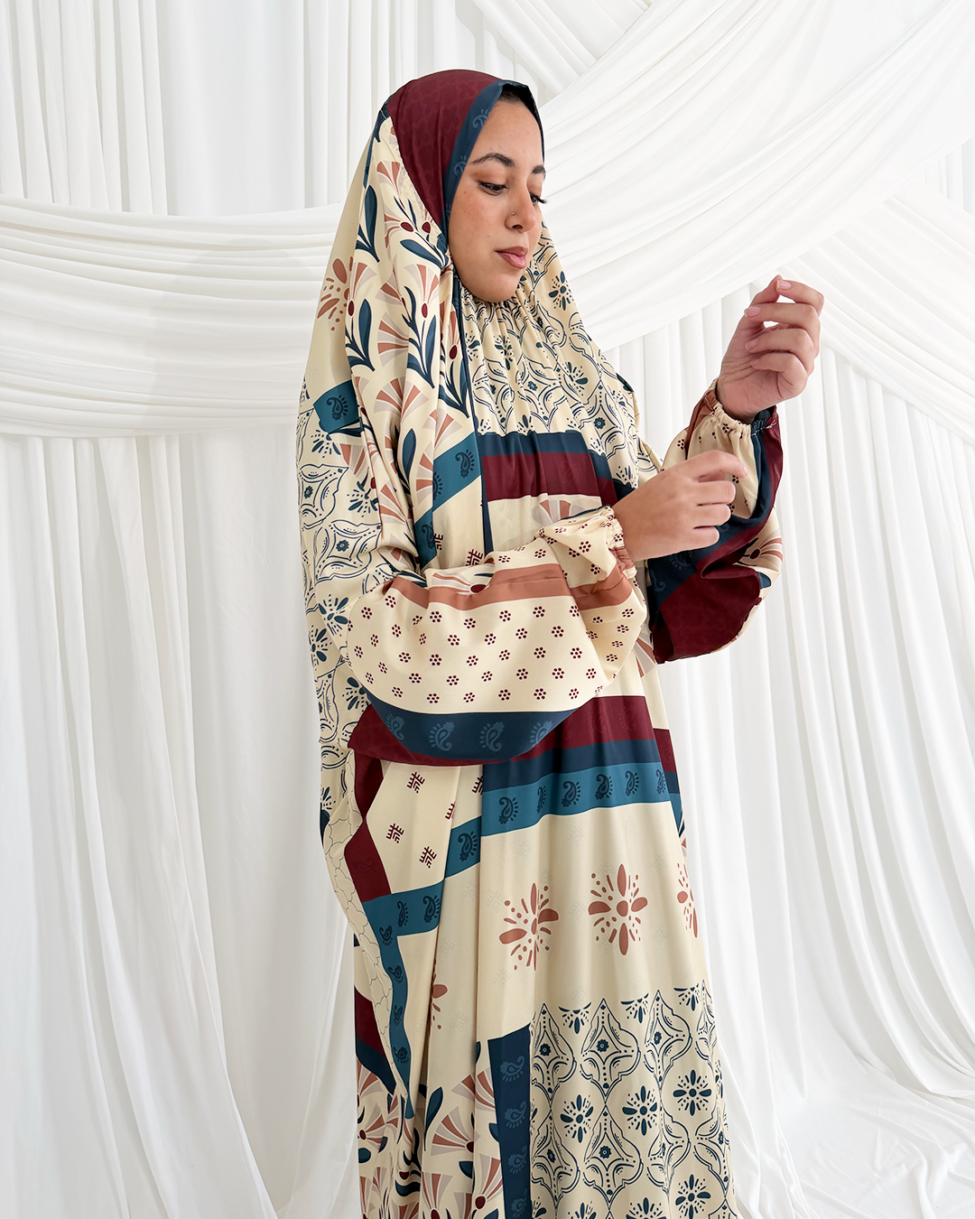 The perfect prayer dress, with fun designs and smooth silky material. Just what you need for calm and serene Ramadan Prayers.