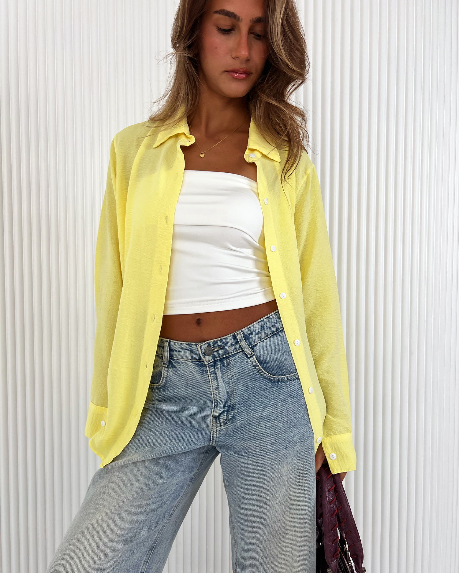 Stay cool and stylish every day with this yellow oversized shirt. Its bright color adds a cheerful pop to your outfit, while the roomy fit ensures comfort no matter where the day takes you. Perfect for effortless, laid-back looks that turn heads.